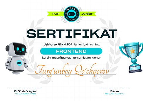 Dasturlash deganda men ko'z oldimga birinchi bo'lib PDP Junior keladi chunki men codingni ilk bor PDP Juniorda tanidim. Kelajagim va orzularimni menga PDP Junior va ustozim nurim berdilar. Buning uchun ulardan juda minnatdorman